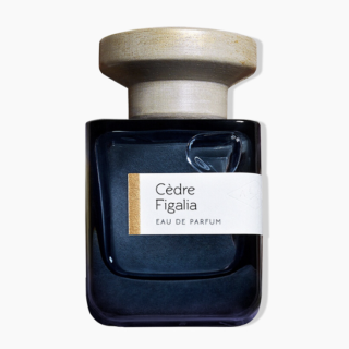 Notes hespéridées fraîches et juteuses, effet de feuilles froissées, souffle boisé diffusant une impression chaleureuse : pas de doute, nous voici transportés dans un décor méditerranéen, à l’éclosion de l’été. Une petite sieste sous le figuier ? L’arbre se dessine par toutes ses facettes : verdeur mordante, nuances lactées et fruitées, amertume de la sève blanche, et jusqu’au tronc construit grâce à trois qualités de cèdre (Alaska, Atlas et Virginie). Mais Cèdre Figalia propose autre chose que l’accord désormais classique de la parfumerie. À travers les facettes sèches et coumarinées de maté, repérable à sa nuance de thé, c’est tout le paysage alentour qui se dessine, et notamment des bottes de foin séchant au soleil. Un parfum panoramique et néanmoins confortable, qui évite les écueils de facilité et affirme son propos avec justesse.