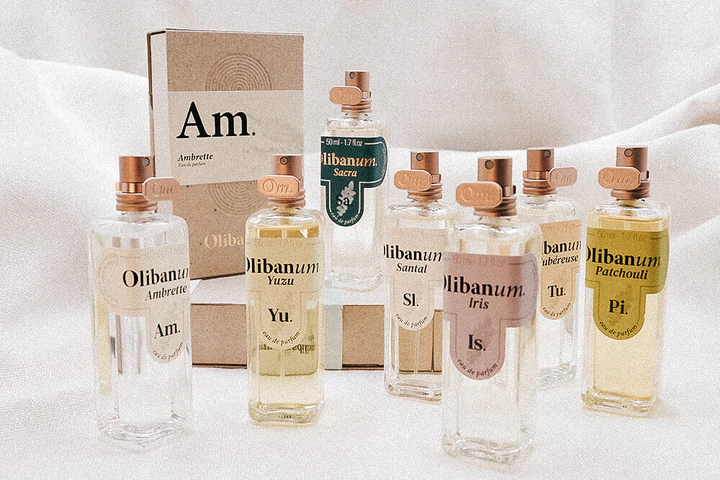 Enfin, ce n’est pas une création mais une marque tout entière que Gérald Ghislain, déjà fondateur d’Histoires de parfums, a choisi de consacrer à l’oliban, autre nom donné à l’encens. Olibanum décline ainsi la résine à l’histoire ancestrale, « offrande brûlée sur les autels dédiés aux divinités », dans dix-huit créations, la mêlant ainsi par exemple au maté, à l’ambrette, au safran ou à la cardamome... Elle est ici employée sous forme d’extrait au CO₂ supercritique, une méthode d’extraction plus écologique et « plus respectueuse des qualités olfactives de la résine brute et qui restitue fidèlement ses tonalités boisée, aromatique, balsamique, minérale, épicée et citronnée ». La marque propose de superposer ses fragrances selon la méthode du layering pour personnaliser son parfum.