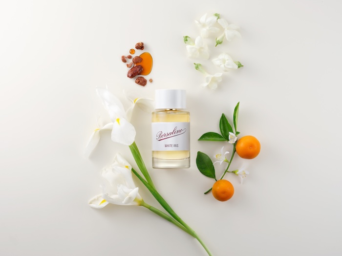 Toujours dans une idée de blancheur, notre nez s’est également arrêté sur White Iris de Borsalino, créé par Nicolas Bonneville. La célèbre marque de couvre-chef nous propose, après un très réussi masculin Black Iris, son faux jumeau féminin, et second parfum en un an. Ce dernier nous propose un départ hespéridé, juteux et pétillant, avant de dévoiler un cœur amandé (plus qu’irisé) évoquant une frangipane bien crémeuse, avec des facettes de cerise et de pêche. Fleur d’oranger et jasmin poursuivent leur route sur un fond boisé chypré.